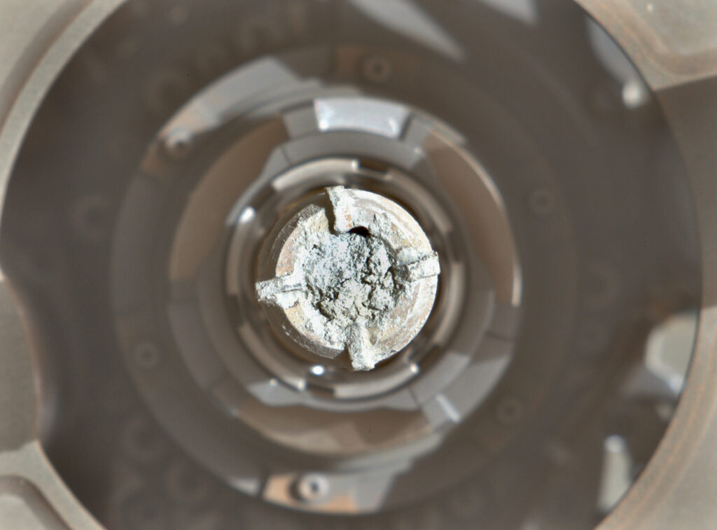 Le immagini di verifica al termine del prelievo, scat¬tate inquadrando la punta cava per svelarne il contenuto, non sembrano incoraggianti. A un primo sguardo la pun¬ta sembra vuota, ma le successive riprese con CacheCam (la camera dedicata all’osservazione dell’interno delle fiale immediatamente prima della loro chiusura) confer¬mano la presenza di campioni di materiale. Si tratta in ef¬fetti del prelievo più esiguo finora, solo 2,91 cm di roccia, ma tanto basta per dichiarare l’operazione un successo e poter così sigillare il 26esimo campione, battezzato Silver Mountain.