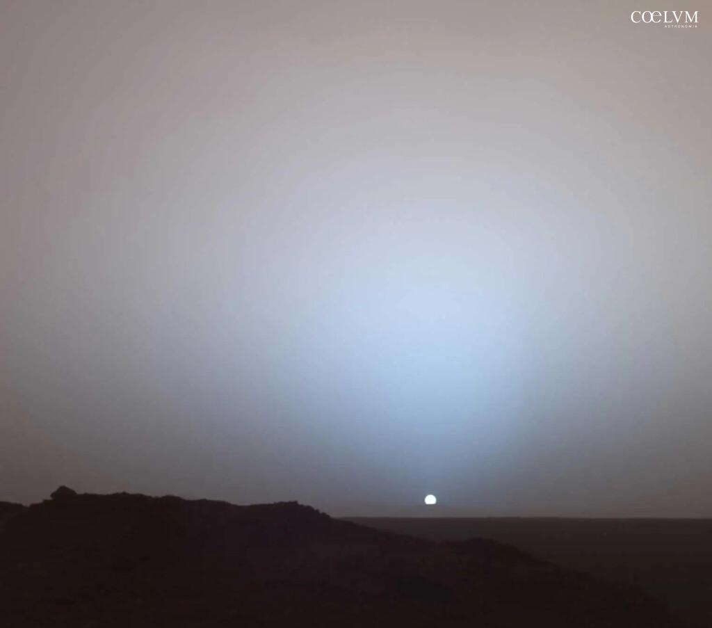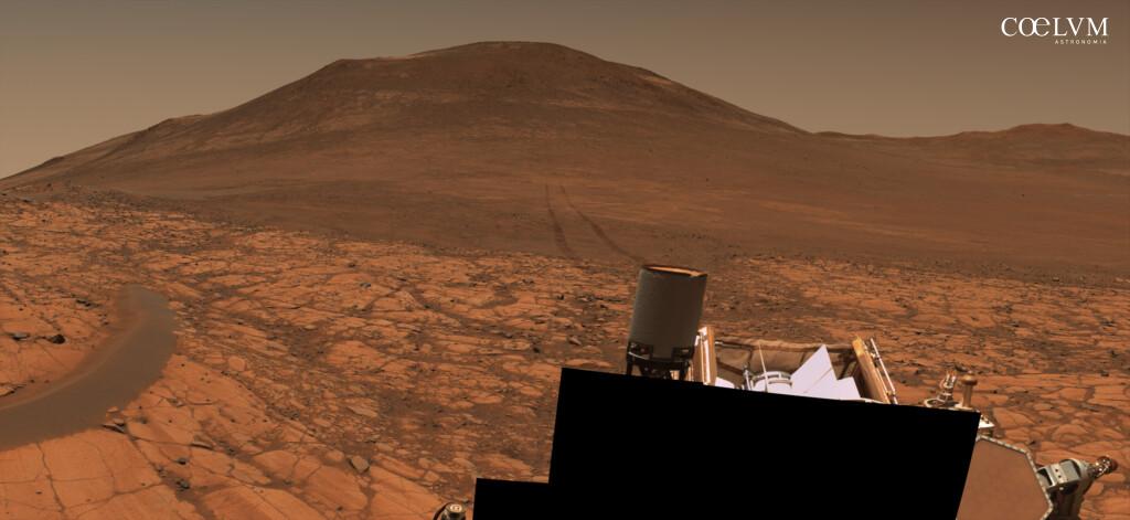 Alcuni giorni dopo l’abrasione della roccia Fallbreen (eseguita il 23 maggio e documentata in Coelum Astronomia n. 275) e le successive analisi, Perseverance ha scattato un’ampia panoramica della regione nei dintorni impiegando le MastCam-Z, le camere zoom montate sulla sua “testa”. Il risultato è uno spettacolare mosaico assemblato magistralmente dagli esperti grafici del JPL e che potete ammirare come copertina di questo articolo: 96 singole fotografie mostrano il paesaggio attorno al rover a 360 gradi. A dare ulteriore valore a questa immagine, oltre al fascino, è l’atmosfera particolarmente trasparente che ha permesso di inquadrare per decine di chilometri verso ovest. La versione dell’immagine scelta mostra in colori esaltati, ovvero con le bande cromatiche processate separatamente per accentuare contrasto e differenze di tonalità, un cielo che appare con sfumature decisamente terrestri. Ma non bisogna farsi ingannare, in questo caso l’azzurro che vediamo è legato al processo di elaborazione e non all’occorrenza dello scattering di Rayleigh come avviene sul nostro pianeta. È altresì vero che ci sono dei momenti particolari in cui il cielo marziano può tingersi effettivamente di blu: è il caso delle albe e dei tramonti, ben documentati da Spirit nel 2005, dovuti al modo in cui le particelle di polvere diffondono la luce solare attraverso un percorso atmosferico più lungo.
