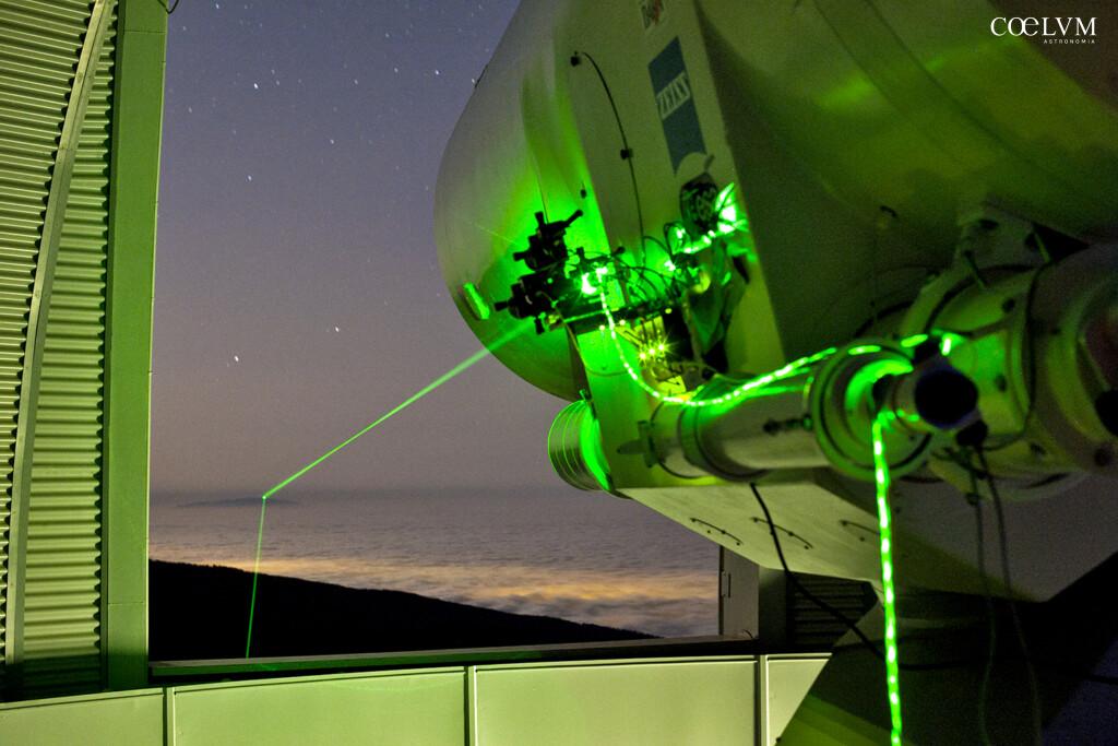 Esperimento del 2012 usando il JKT di La Palma e il OGS di Tenerife Nell’immagine il raggio laser trasmesso con l’informazione necessaria.