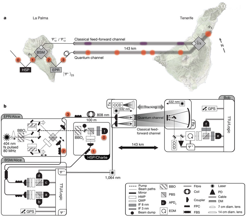 Ruben si riferisce all’esperimento che nel 2012 venne eseguito tra il JKT di La Palma e l’OGS di Tenerife, e che ottenne il record di distanza nella tecnologia del cosiddetto “teletrasporto quantistico”.