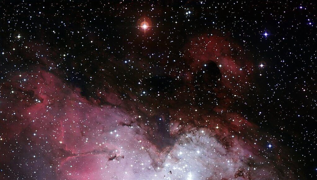 La Nebulosa Aquila (Messier 16), scoperta da Philippe Loys de Chéseaux nel 1746 e osservata successivamente da Charles Messier, è famosa per i Pilastri della Creazione, immortalati dal telescopio Hubble nel 1995. Situata nella costellazione della Coda del Serpente, è un giovane ammasso aperto con una nebulosa a emissione. L’ammasso contiene circa 500 stelle, alcune delle quali sono pre-sequenza principale e brillanti supergiganti blu. Strutture ultradense come i Pilastri della Creazione e la Guglia Stellare si trovano all’interno della nebulosa, ospitando processi di formazione stellare.