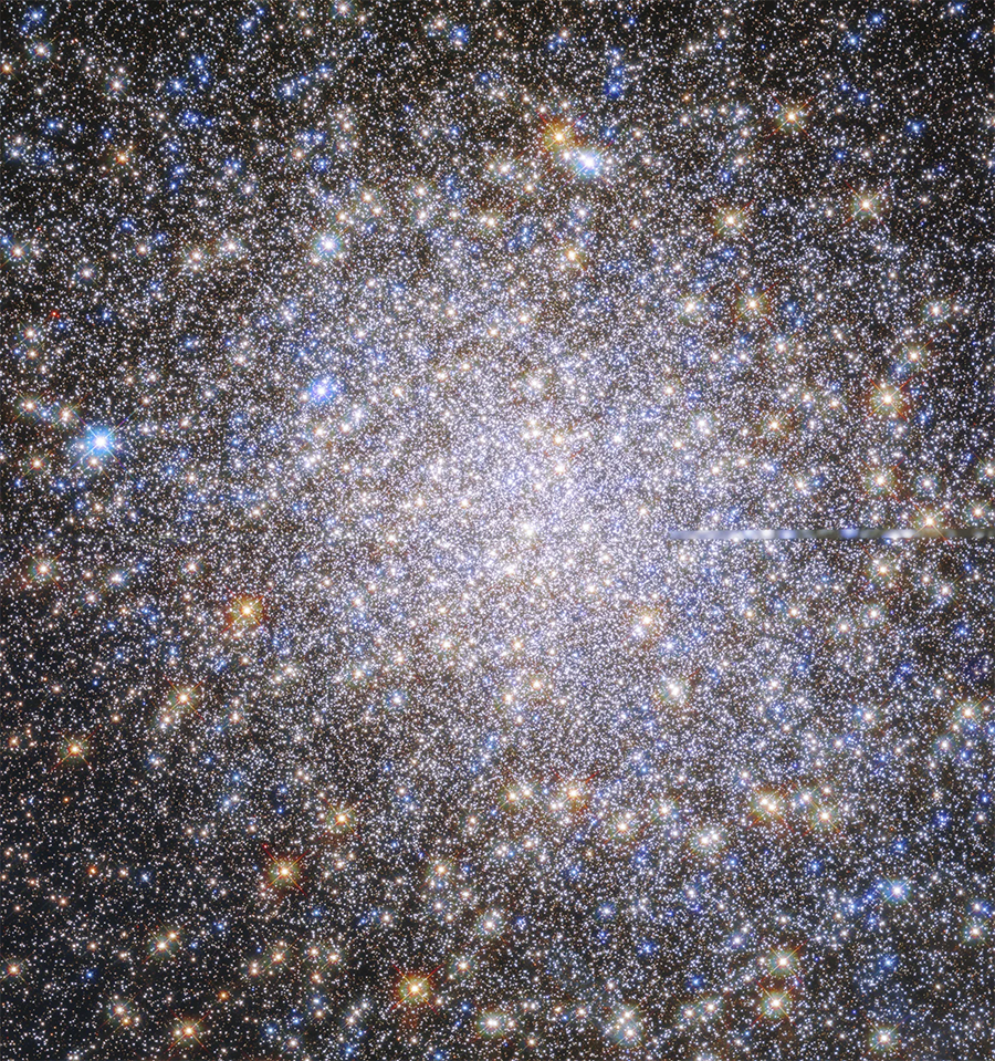 L’ammasso contiene una stima di circa 1.1-1.5 milioni di masse solari, ha quasi 12 miliardi di anni di età (per un altro paragone, il nostro Sistema Solare ha “solo” 4.5 miliardi di anni), e si sta allontanando da noi alla velocità di 146 km/s. Al suo interno possiamo trovare differenti tipi di stelle, come quattro Cefeidi (stelle giganti che pulsano aumentando e diminuendo i loro diametro, temperatura, e luminosità su periodi che vanno da qualche ora a centinaia di giorni) ed almeno una stella variabile pulsante di tipo RV Tauri.