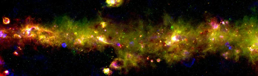 La riga a 1420 MHz, associata a una galassia che si allontana a causa dell’espansione dell’Universo, verrà osservata a una frequenza più bassa e la differenza, tra la frequenza a cui si osserva la riga e 1420 MHz, è una misura della distanza della galassia o del tempo trascorso da quando è stato emesso il segnale rivelato. Osservazioni a frequenze sempre più basse corrispondono a osservazioni di regioni sempre più distanti e, proprio come una macchina del tempo, ci permettono di raccogliere informazioni sull’Universo primordiale. Man mano che le prime strutture cosmiche si formano e nascono le prime stelle, queste con la loro luce ultravioletta, riescono a ionizzare l’idrogeno circostante che, non essendo più neutro, perde la sua firma caratteristica a 1420 MHz.
