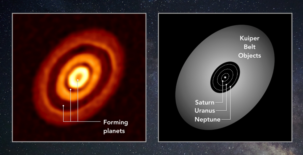 Una delle scoperte più intriganti degli ultimi anni è l’esistenza di sistemi planetari oltre il nostro sistema solare. Il numero degli esopianeti è in rapida crescita e la maggior parte di loro mostra un’architettura molto diversa di quella del nostro sistema solare. SKA contribuirà a capire il processo che porta alla formazione dei pianeti, osservando l’emissione radio prodotta dalle particelle che si aggregano tar di loro, da scale di centimetri a metri. Grazie alla sua sensibilità e copertura in frequenza, sarà inoltre possibile rivelare l’emissione da molecole complesse, permettendo di capire l’evoluzione della chimica che porta alla formazione di potenziali biosfere. SKA sarà inoltre capace di rivelare anche eventuali segnali dovuti a civiltà extraterrestri tecnologicamente attive.