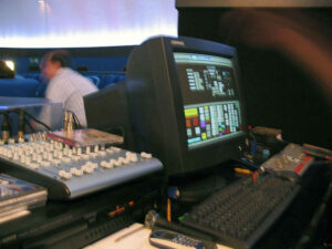 Aggiungo che questo planetario lavora molto anche col suono, quindi l’acustica è stata particolarmente curata e sono stati installati costosi diffusori direzionali. Da una piccola consolle, tramite un monitor ed una tastiera si comandano 3 personal computer, dedicati ai vari sottosistemi quali la grafica, la parte meccanica, ecc, interfacciati ad un elaboratore centrale.”