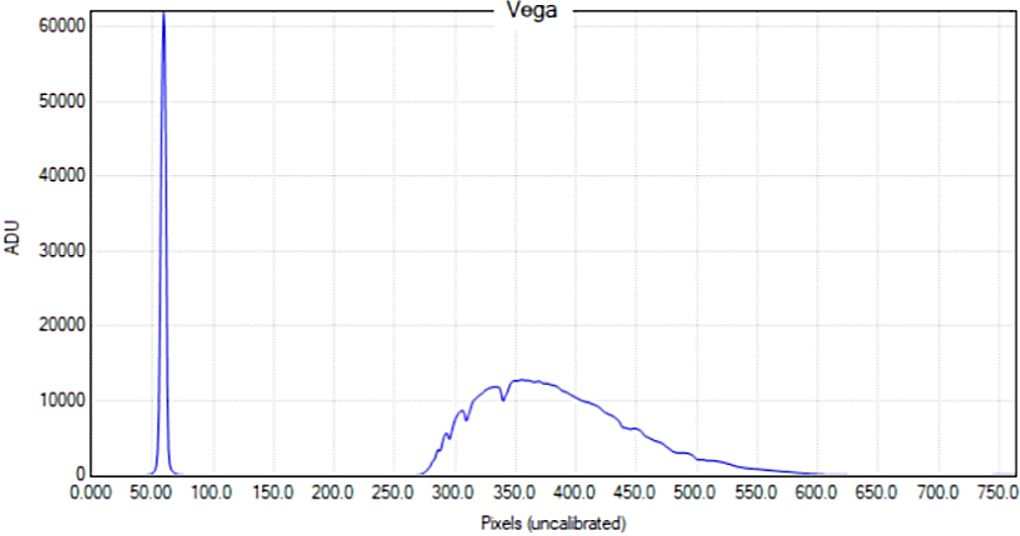 Figura 13: Profilo spettrale monodimensionale estratto dall’immagine di Vega durante il processo di riduzione.