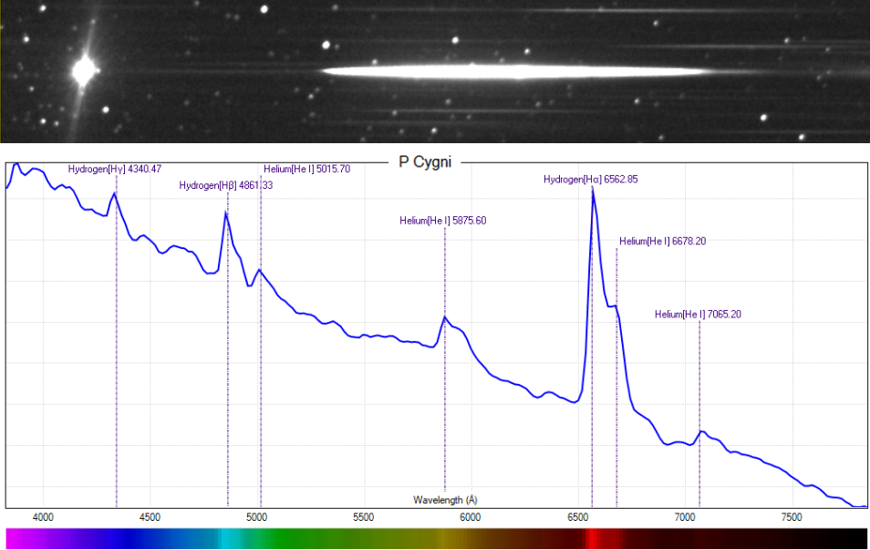 Figura 22: Spettro della supergigante blu P Cygni con le righe di emissione dell’idrogeno e dell’elio.