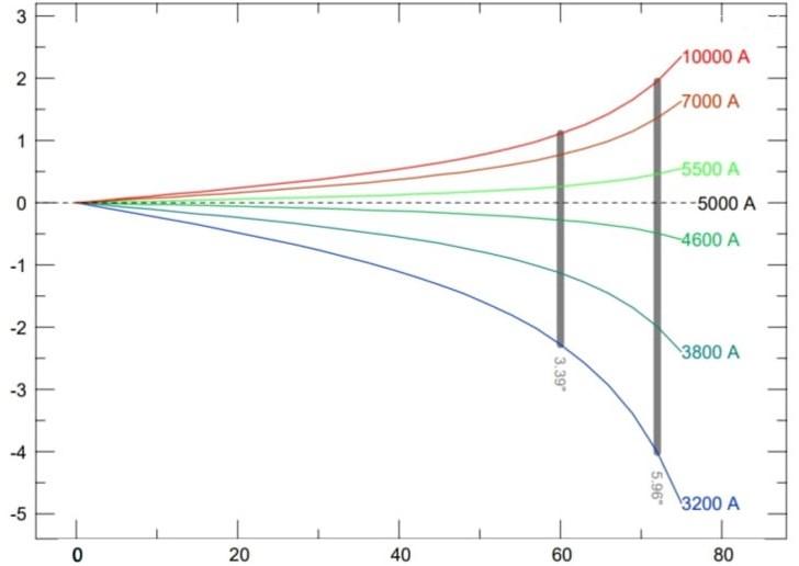 Va comunque precisato che la dispersione si manifesta teoricamente nell’osservazione di corpi celesti a qualsiasi altezza sull’orizzonte (ad esclusione dello Zenith, dove la dispersione è nulla), con un effetto in prima approssimazione variabile linearmente solo entro una distanza zenitale di circa 30°.