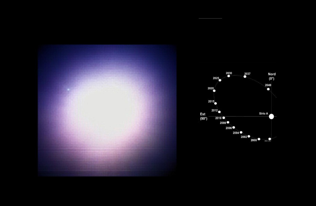 Passaggio successivo: allineare manualmente sul centroide medio tutti i singoli fotogrammi, cercando di compensare a vista le deformazioni della stella dovute al seeing (ci sono voluti diversi minuti) e, al termine, Registax mi ha restituito l’immagine raw che potete vedere. La successiva elaborazione con i wavelet ha evidenziato un oggetto a circa 5″ dal centroide di Procione e più debole rispetto a Sirio B (di fatto le due immagini hanno la stessa scala e sono direttamente confrontabili). Mi son messo alla ricerca delle effemeridi di Procione B sul Web, rendendomi subito conto della scarsità di materiale disponibile e nemmeno omogeneo per dati! Anche per questo secondo oggetto mi è stata utile l’osservazione storica del buon Fulvio Mete (2006 e 2008) trovandovi un buon accordo per il PA e la separazione. Potete immaginare qual è stata la mia soddisfazione: due nane bianche in otto giorni è un risultato ben oltre qualsiasi aspettativa! E il tutto scaturito da quello che doveva essere soltanto un test…