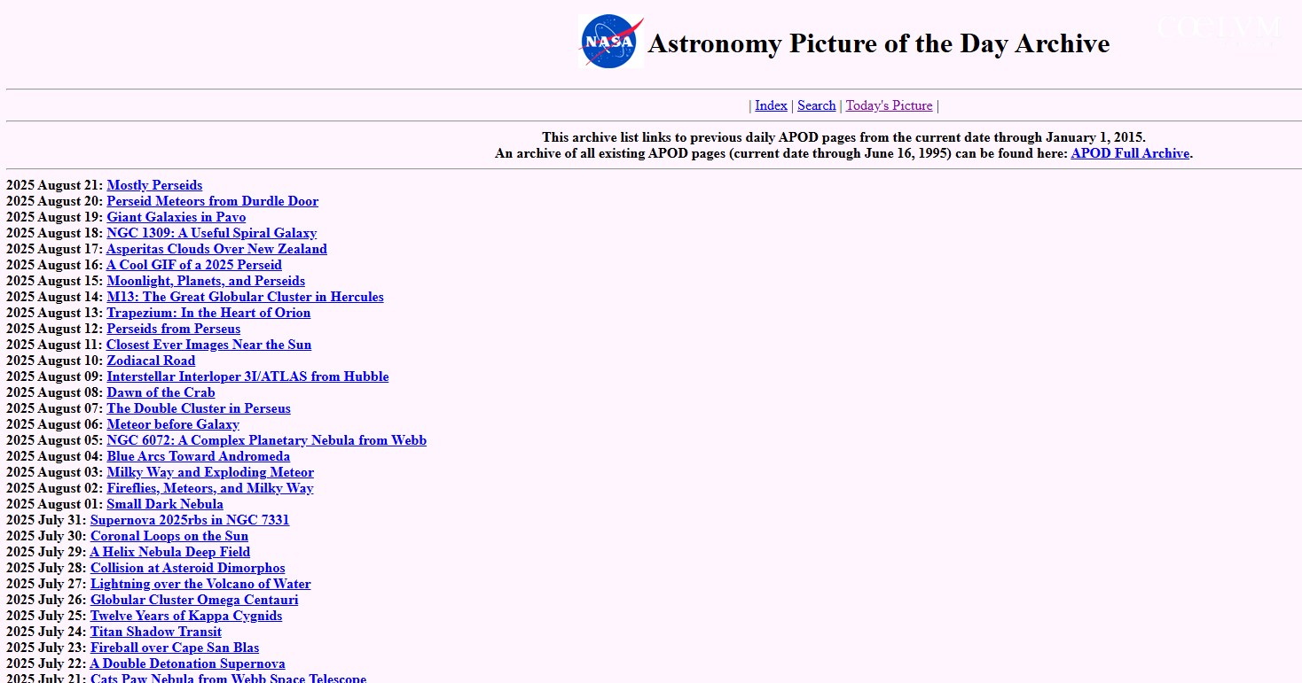 Dopo quasi trent’anni, APOD è ancora uno dei siti di astronomia più visitati al mondo. Il suo archivio, facilmente consultabile per data, permette di esplorare le immagini pubblicate fin dal 1995, offrendo un patrimonio senza precedenti.