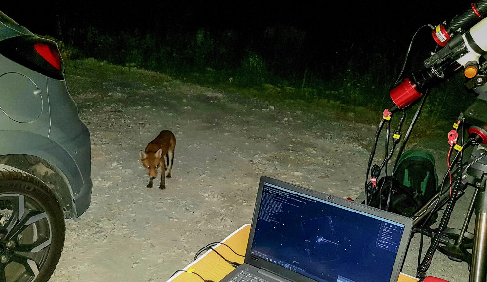 Ma a volte le emozioni non arrivano solo dal cielo. Col buio alcuni animali selvatici si possono avvicinare curiosi, attratti dalle lucine della nostra attrezzatura e dal computer collegato al telescopio. Se siamo poco distanti da qualche paesino è facile trovare qualche gatto o cane girovagare.