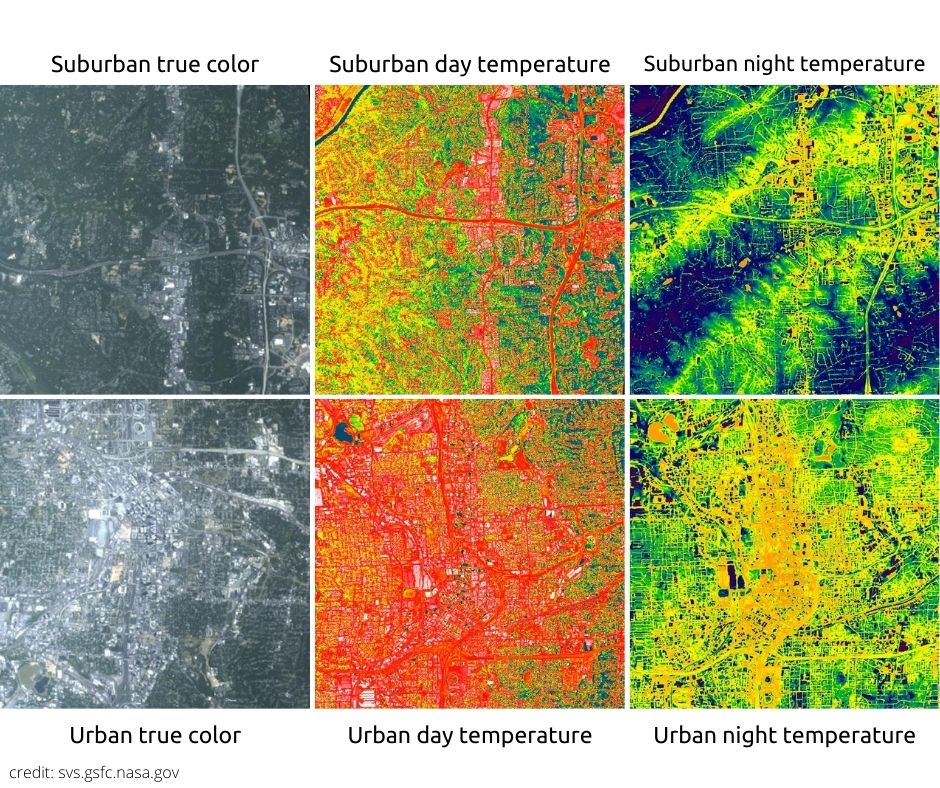 L’asfalto, il cemento e materiali simili che costituiscono strade ed edifici urbani assorbono e trattengono molto più calore rispetto la vegetazione, con il risultato che le temperature nelle aree urbane possono aumentare, rispetto alle regioni rurali, anche di 10 gradi.