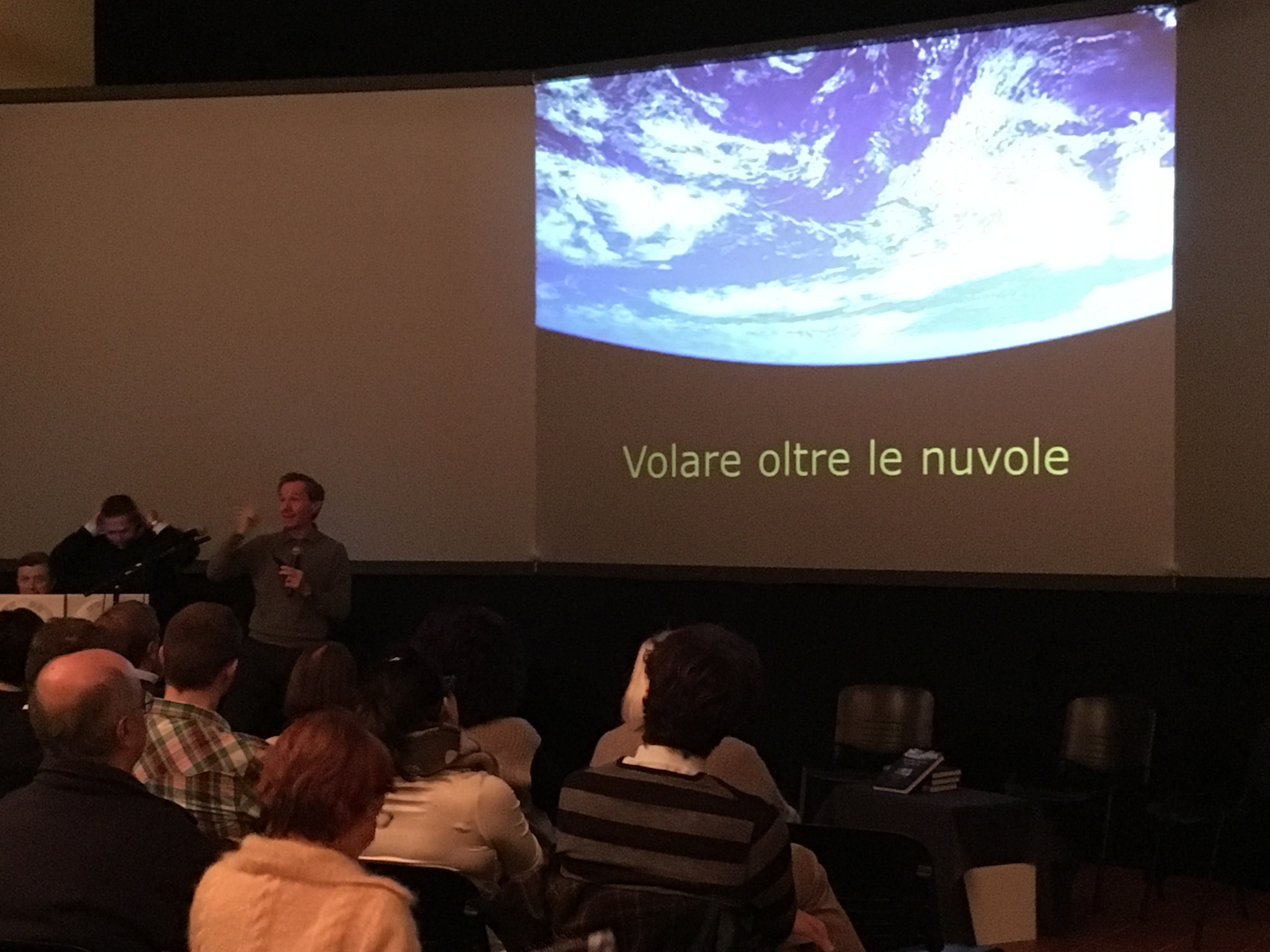 Nel tardo pomeriggio, dopo un breve intervento di Pierdomenico Memeo (divulgatore scientifico della Cooperativa Ossigeno) sul mini-corso per piccoli astronauti “Space Camp”, e l’introduzione di Stefania Varano (responsabile della divulgazioneper INAF), l’astronauta Cheli ci ha descritto la sua esperienza sullo Shuttle Columbia (anno 1996): 1260 interruttori, l’abbraccio avvolgente delle fiamme di tanti colori alla partenza, al rientro e tutto quel che sta in mezzo, in modo semplice ed emozionante come forse solo un volo spaziale sa essere.