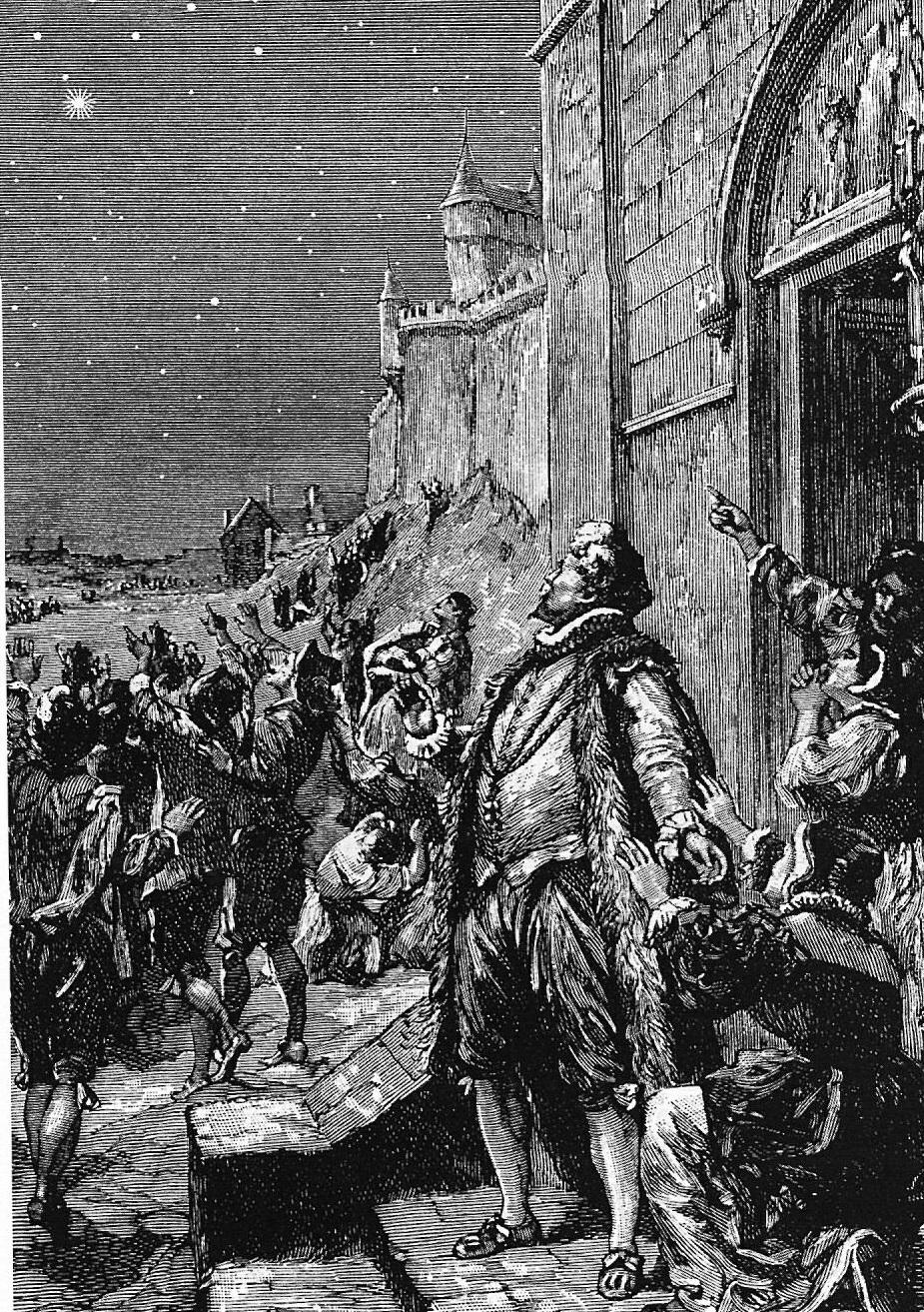La sera dell’11 novembre 1572, infatti, uscendo dal laboratorio chimico dello zio, Tycho notò una luminosissima stella che non aveva mai visto prima, non lontana dalla luminosa Gamma Cassiopeiae, la stella centrale della famosa costellazione caratteristica per la forma a W. In pieno autunno e alle latitudini danesi, Cassiopea appariva altissima sull’orizzonte, e quell’intruso, che appariva luminoso quanto Venere, non poteva passare inosservato all’astronomo danese che conosceva molto bene la volta celeste! Incuriosito di sapere da quanto quella nuova stella fosse li, ma anche demoralizzato dal fatto di non aver potuto osservare il cielo nelle nottate precedenti a causa di altri impegni, Tycho interpellò da subito passanti e conoscenti chiedendo loro se la nuova stella da lui notata fosse stata vista da qualcuno anche nelle serate precedenti, ma grande fu la sua delusione nel non ricevere alcuna risposta. Certamente tutti la vedevano in quel preciso momento, ma nessuno sapeva dire da quanto tempo era lì.