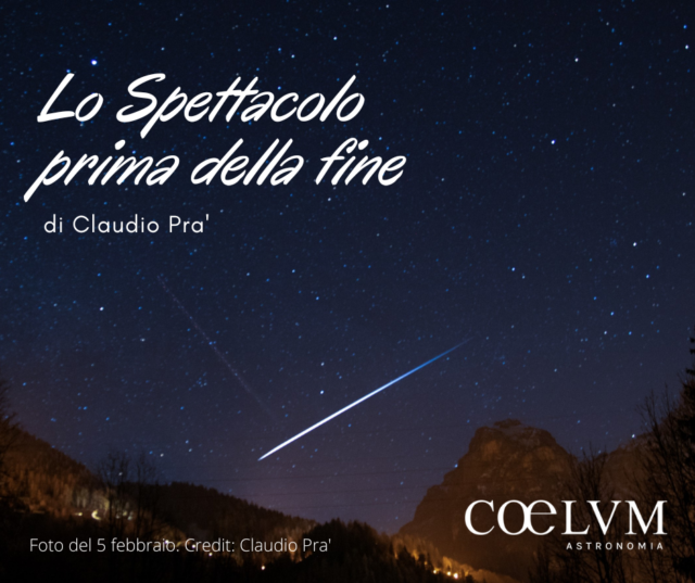 Solo qualche giorno dopo leggo la notizia della tempesta geomagnetica che ha colpito quel trenino facendolo deragliare, con il rientro e la distruzione in atmosfera dei suoi vagoni. Quel inutile attesa del secondo passaggio ora ha una spiegazione e acquista valore l’osservazione di quel primo e unico spettacolare transito, il più bello tra quelli che ho avuto la fortuna di osservare finora.