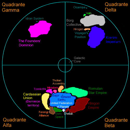 Al posto della tavola rotonda c’è la Via Lattea, e i commensali sono sostituiti dai settori galattici amministrati da altrettanti governatori. Con i quattro quadranti alla Star Trek la soluzione è semplice: anzi, l’avete già vista nella figura precedente.