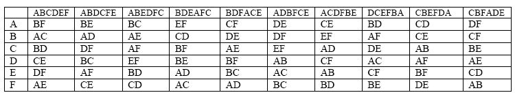 Come si risolve la parte difficile del problema, cioè lo schema di rotazione dei 6 governatori? In questo caso le possibili configurazioni sono (6-1)(6-2)/2 = 10, ma quali sono?