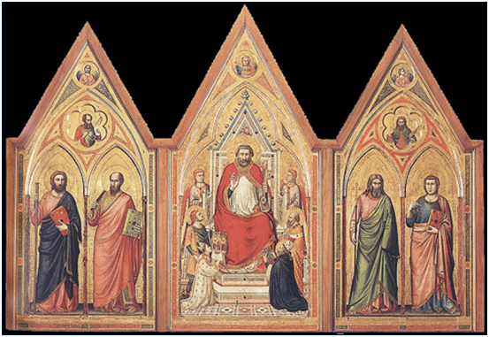 Anche nell’arte figurativa si possono trovare esempi di opere autosimili: nel polittico Stefaneschi di Giotto, infatti, si osserva (nella figura qui a destra) il committente dell’opera che regge in mano un modellino del polittico stesso.