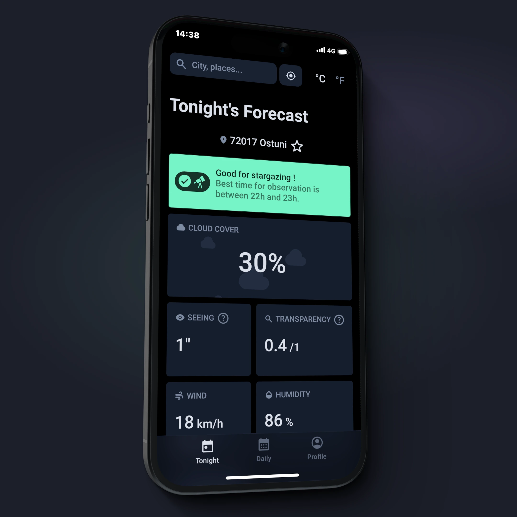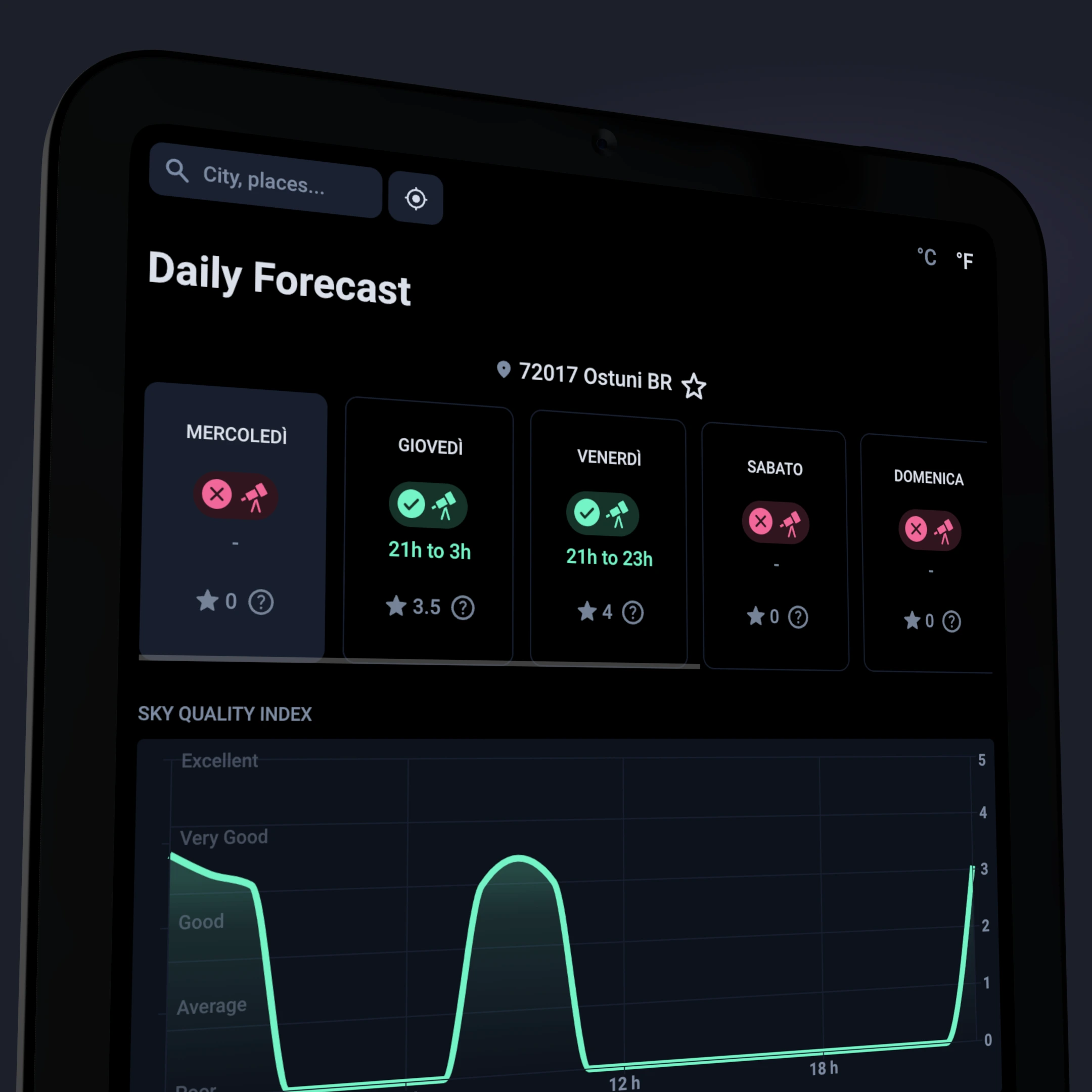 Ouranus infatti offre previsioni meteorologiche dettagliate ora per ora per un periodo fino a sette giorni consultabili mostrando separatamente parametri astronomici cruciali come il seeing e la trasparenza, fattori determinanti per valutare la chiarezza e la stabilità del cielo e ottenere in conclusione un’osservazione di qualità.