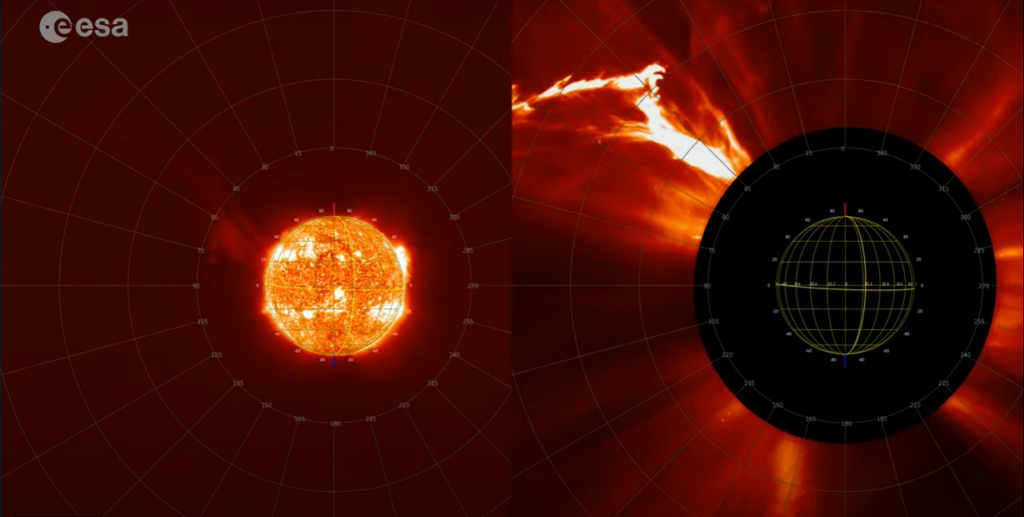 Le spettacolari immagini di Solar Orbiter risalgono al 15 febbraio scorso, e l’eruzione si è estesa per milioni di chilometri nello spazio. Fortunatamente, l’esplosione non era puntata in direzione del nostro pianeta. La sonda SOHO che sta monitorando il plasma espulso conferma come lo stesso si stia completamente muovendo verso un’altra direzione.