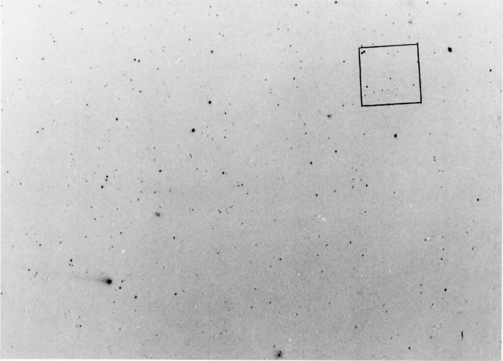 Seguendo il suggerimento ci siamo concentrati poi sui documenti esistenti relativi alla cometa Finsler individuando un nuovo resoconto fotografico interessante prodotto la notte del 16 agosto 1937 dall’osservatorio di Arcetri a Firenze. Abbiamo contattato l’osservatorio ed i responsabili dell’archivio fotografico per aver conferma della presenza ed accesso alle lastre realizzate sulla cometa Fisher in quella notte. Poco è durata l’illusione di aver scovato un’ulteriore pre-discovery della supernova, in realtà le lastre Agfa e Cappelli utilizzate per le riprese sono state ottenute con lo storico rifrattore Amici da 36cm di diametro che dispone di una lunga focale da cui un campo d’immagine ridotto, solo circa mezzo grado. La SN con una distanza di 8° si posizionava ampiamente fuori dal campo di ripresa.