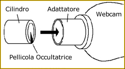 In pratica, come mostra la figura, si tratta di “occultare” un settore del campo inquadrato dal sensore (webcam o CCD), per far si che, ruotando opportunamente il cilindro di sostegno, venga nascosto, per quanto possibile, solamente il pianeta.