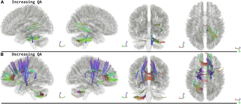 È quello che hanno scoperto alcuni neuroscienziati della University of Antwerp, con uno studio pubblicato di recente sul Frontiers in Neural Circuits. I risultati mostrano delle modifiche microstrutturali in diversi tratti della materia bianca [parte del cervello e midollo spinale che contiene le fibre nervose, ndr], ovvero i tratti sensomotori.
