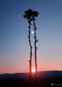 Completiamo la carrellata di alcune fake-photo con l’immagine che segue in cui Sole e Luna sono perfettamente allineati fra le due palme, ma potrebbero essere due colonne qualsiasi. In questo fotomontaggio, perchè di ciò si tratta, a suggerirci il sospetto dovrebbe essere la Luna che non sarà mai piena e così luminosa se sita dallo stesso lato del Sole rispetto all’obiettivo.