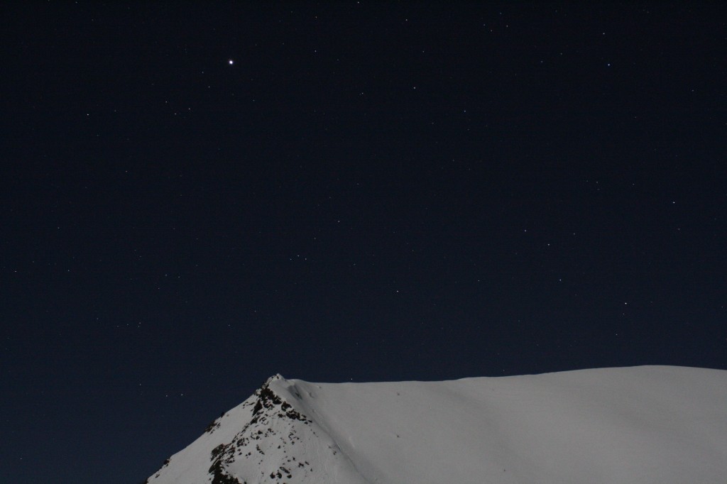 Un riflesso di Giove? Dubitiamo anche di questo… l’immagine si mostra troppo secca e puntiforme, e ci sarebbe stato (sebbene spostato) anche nelle fotografie fatte più tardi. Il flare di un satellite? Sarebbe però dovuto essere un geostazionario… Talvolta anche questi possono produrre dei flare, specialmente in certi periodi dell’anno (da noi, quelli invernali, per effetto della declinazione australe del Sole). Il dubbio è che per quanto breve sia stata la posa di 8 secondi, avrebbe comunque dovuto evidenziare il diverso moto del satellite rispetto alle stelle… Mah!”