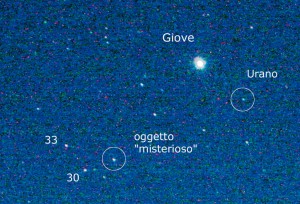 Domenica 16 gennaio il nostro amico collaboratore Claudio Pra (Alleghe (BL) ha scattato parecchie foto a grande campo per immortalare Giove accanto a Urano. In una di esse, scattata alle 18:46 ora legale, si è accorto della presenza di una stellina intrusa accanto alle stelle 33 e 30 Piscium, di magnitudine praticamente identica, quindi di +4,5 mag. circa. Ci scrive Pra: “L’oggetto è puntiforme e non mostra movimento. Considerando l’esposizione di 8 secondi non saprei cosa può essere. Ho controllato alcune foto scattate tre quarti d’ora dopo e della stellina intrusa non c’è più traccia. L’ipotesi che ho formulato è quella del satellite in rotazione che mostra un brillamento di pochi istanti ma non so se possa essere corretta.”