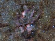 La Nebulosa Aragosta (NGC 6357), osservata dal telescopio infrarosso VISTA, rivela un vivace laboratorio stellare a 8.000 anni luce. Tra nubi di polveri e gas, ospita ammassi giovani con stelle giganti, come Pismis 24. Le osservazioni infrarosse svelano processi di nascita e distruzione stellare fondamentali per capire l’evoluzione della Via Lattea.