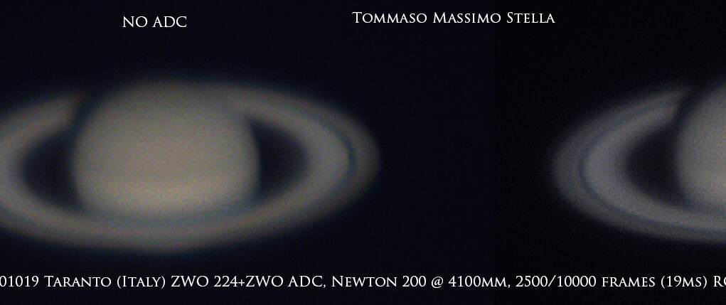 A ottobre 2020 ho realizzato riprese comparative di Saturno con e senza ADC.