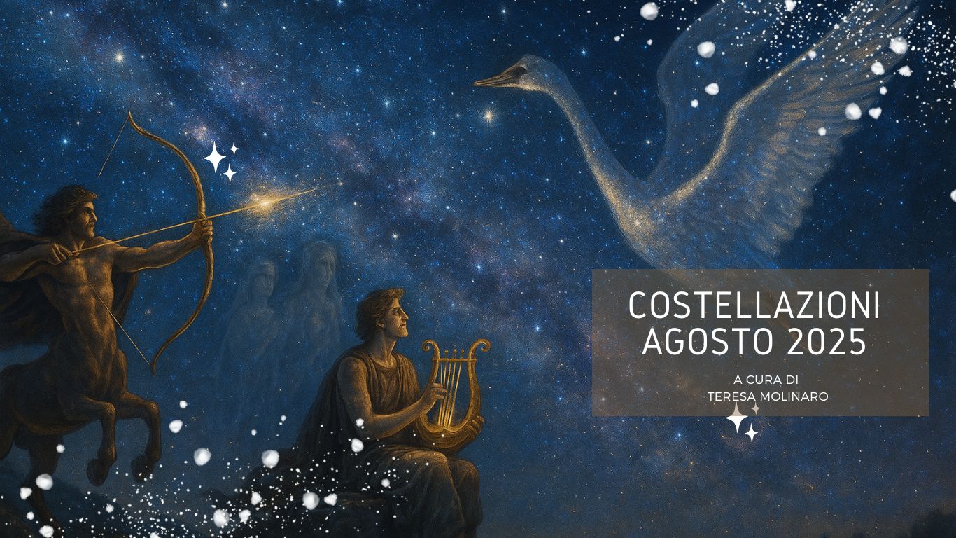 Nel cielo d’agosto brillano tre costellazioni mitologiche: il Sagittario, che ospita il centro della Via Lattea e il buco nero Sagittarius A*; la Lira, simbolo dell’amore tragico di Orfeo ed Euridice; e il Cigno, legato a Zeus e Leda. Un viaggio tra stelle, nebulose e leggende che ancora oggi affascinano sotto il cielo estivo.
