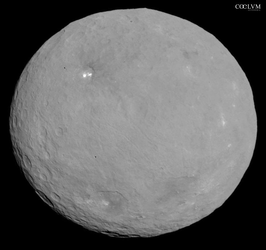 [3] Il cratere Occator su Ceres, largo 92 km, è famoso per le sue macchie luminose di sali brillanti.