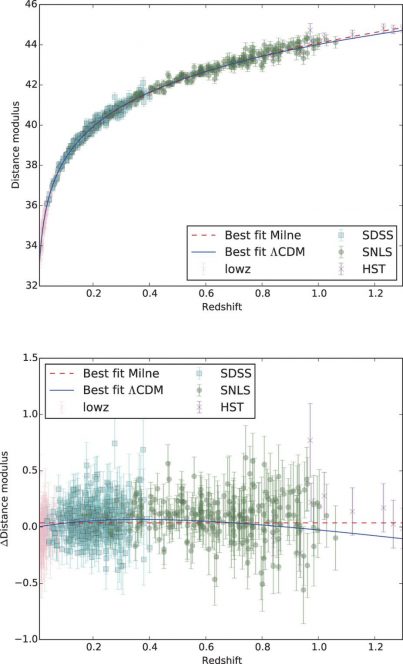 «Al contrario, a me più che “falso” sembra “oscuro”, anzi uno dei problemi più enigmatici della moderna astrofisica. Nel lungo termine, come sottolineato da Nielsen et al. verso la fine del loro articolo, l’esperimento CODEX presso l’European Extremely Large Telescope (EELT) dovrebbe chiarire in modo definitivo il punto in discussione, misurando direttamente la variazione del tasso di espansione dell’universo (redshift-drift). Nel breve termine, invece, la scoperta di supernove-1a a grandi redshift (z=1.5-2) e la loro collocazione nel diagramma magnitudine-distanza potrebbe dare indicazioni molto interessanti sul tipo di espansione che caratterizza l’universo nel quale viviamo».