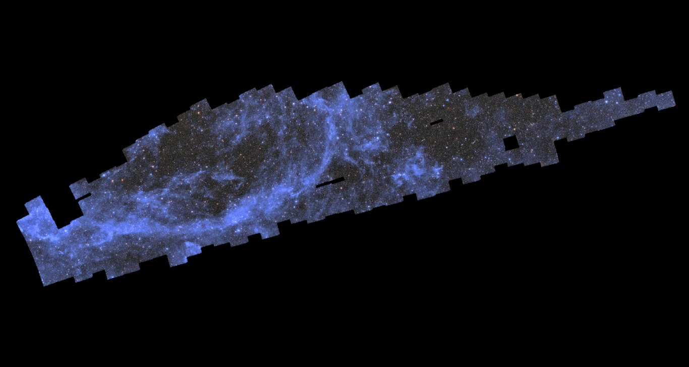 Il lembo contiene circa 100 milioni di fonti: stelle nella nostra Via Lattea ma anche molte galassie lontane. Circa 14 milioni delle quali potrebbero essere utilizzate per studiare l’influenza nascosta della materia oscura e dell’energia oscura sull’Universo.