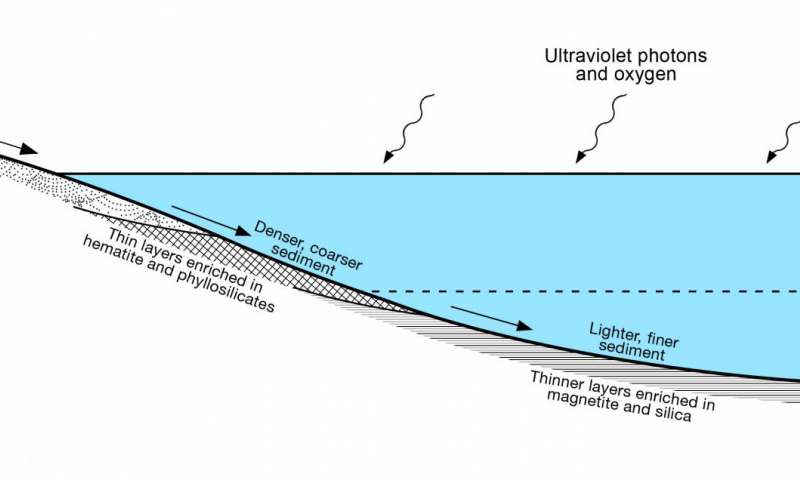 Già in precedenza, grazie ai campioni raccolti da Curiosity il grande rover della NASA, una serie di studi hanno confermato l’esistenza di un lago, tra i 3,2 e i 3,8 miliardi di anni nel passato, all’interno del cratere Gale. Il nuovo studio, pubblicato su Science e guidato da Joel Hurowitz dell’Università di Stony Brook (New York), raccoglie quei dati e ne identifica le condizioni e diversità chimiche confermandone la natura sedimentaria. Rocce stratificate, dovute alla presenza di acqua, mostrano infatti nette differenze sia chimiche che fisiche a seconda che la sedimentazione sia avvenuta in acque poco profonde o acque più profonde.