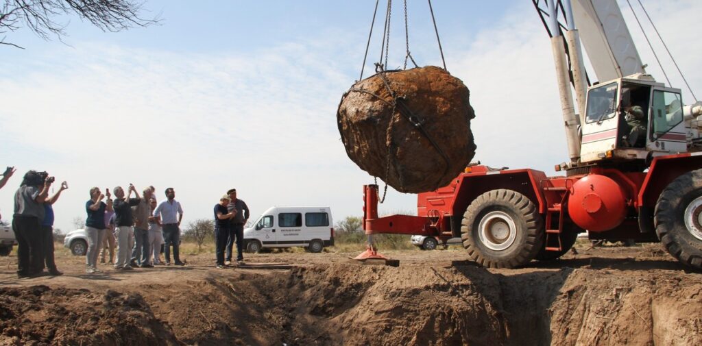Se la nostra classifica fosse fatta per la massa totale conosciuta e non per la massa principale, Campo del Cielo supererebbe tutti gli altri meteoriti. A circa 1000 km da Buenos Aires, tra le provincie di Cacho e Santiago, si trova un sito tra i più ricchi di meteoriti al mondo. Circa 5000 anni fa un piccolo asteroide di almeno 600 tonnellate esplose sul Cile e una pioggia di frammenti colpì questa zona. In un’area ellittica di appena 3×18 km sono presenti 26 crateri da impatto ed una quantità di meteoriti che non ha uguali. La storia di questo sito è antica ed interessante. Nel 1576, esploratori spagnoli, lo scoprirono, credendolo una miniera di ferro, nonostante che i nativi sostenessero che questo ferro fosse caduto dal cielo, da cui il nome. Due secoli dopo, il sito fu riscoperto, grazie a documenti e campioni ritrovati, ma ci vollero ancora diversi decenni prima che l’origine extraterrestre del ferro di Campo del Cielo fosse accettata. Oggi l’area dispone di un centro visitatori e di un museo, circondato da un parco. Nel parco si trova El Chaco di 29 tonnellate, scoperto nel 1969, ma anche alcuni “fratellini” minori; La Sorpresa di 15 tonnellate, Santiagueno di 7.850 Kg. Nel 2016, a breve distanza da El Cacho è stato trovato un nuovo meteorite di quasi 31 tonnellate (30.800 Kg), ribattezzato Gancedo, dal nome della municipalità sul cui territorio si trova il sito. El meteorito Gancedo è divenuto quindi il terzo per massa, e si trova oggi esposto davanti al museo di Campo del Cielo. Si stima che le meteoriti recuperate sino ad ora siano più di 120 tonnellate, stima ottenuta purtroppo per difetto a causa dei frequenti furti che ancor oggi interessano l’area.