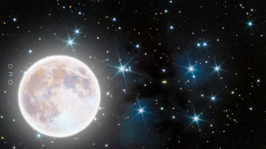 La distanza apparente tra i due oggetti sarà di circa 2°, pari a quattro volte il diametro apparente della Luna nel cielo. Sarà un’occasione unica per osservare, anche con un binocolo, il contrasto tra la luce lunare e la delicata brillantezza delle Pleiadi.