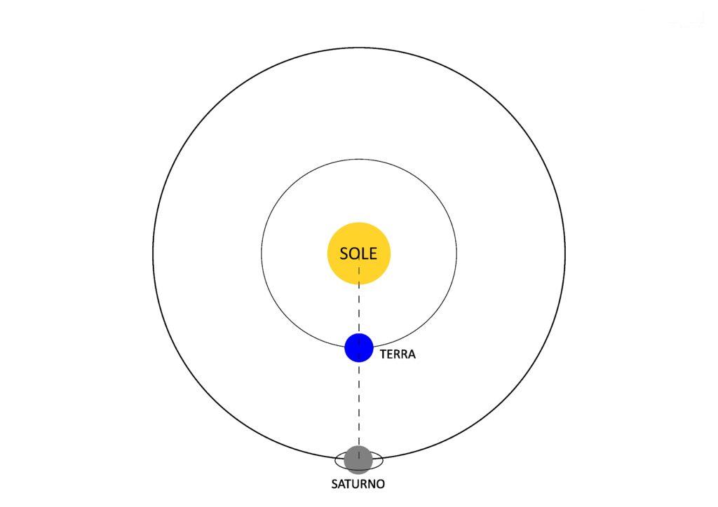 Nel momento in cui Sole, Terra e Saturno sono allineati in quest’ordine, con Saturno quindi a 180° rispetto al Sole, si parla di opposizione.