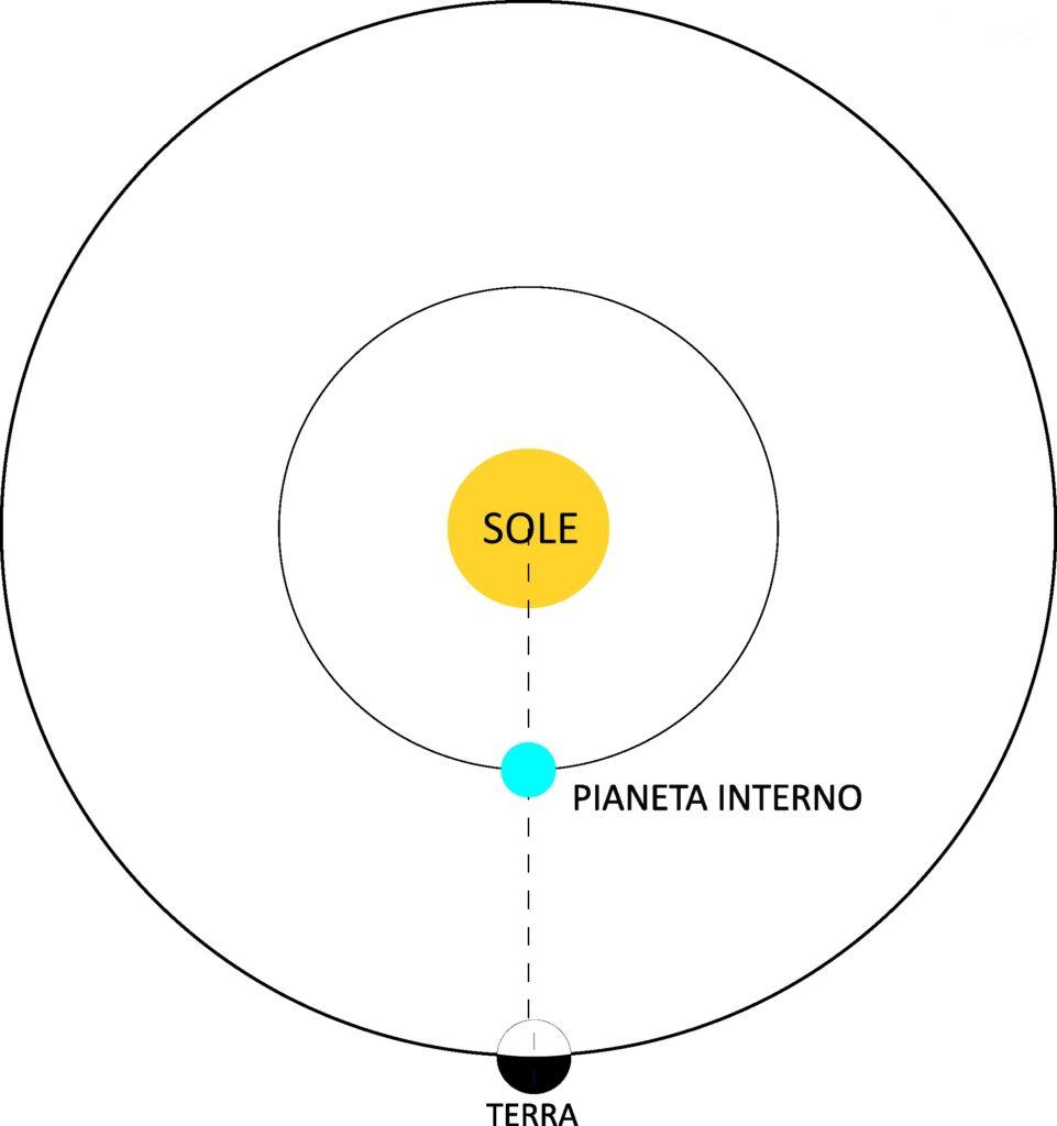 Questo è il motivo per cui i pianeti interni (Mercurio e Venere) sono visibili solo in prossimità dell’alba e/o del tramonto. Ma questa è un’altra storia…
