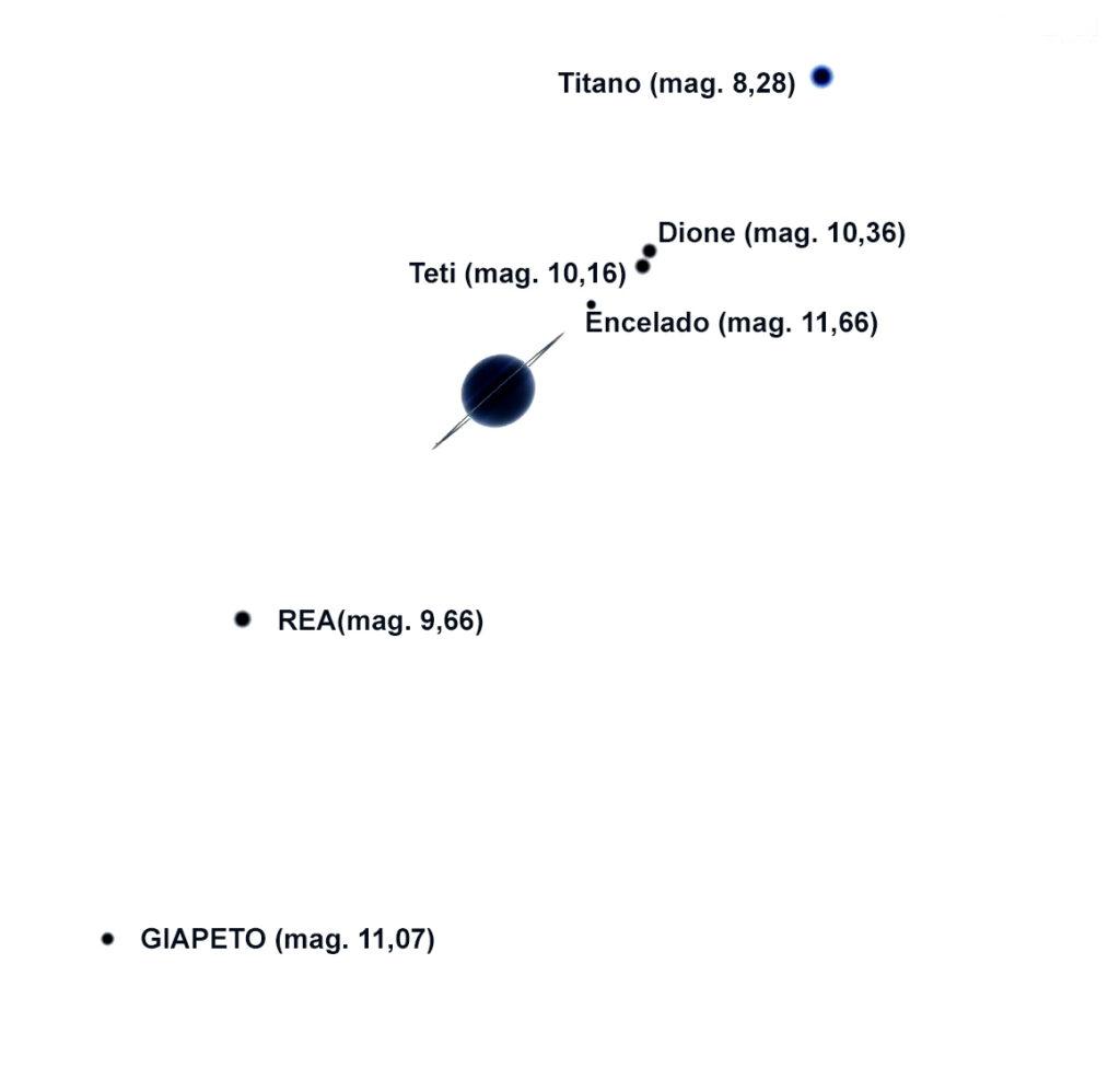 La disposizione dei satelliti più luminosi di Saturno il giorno dell’opposizione.