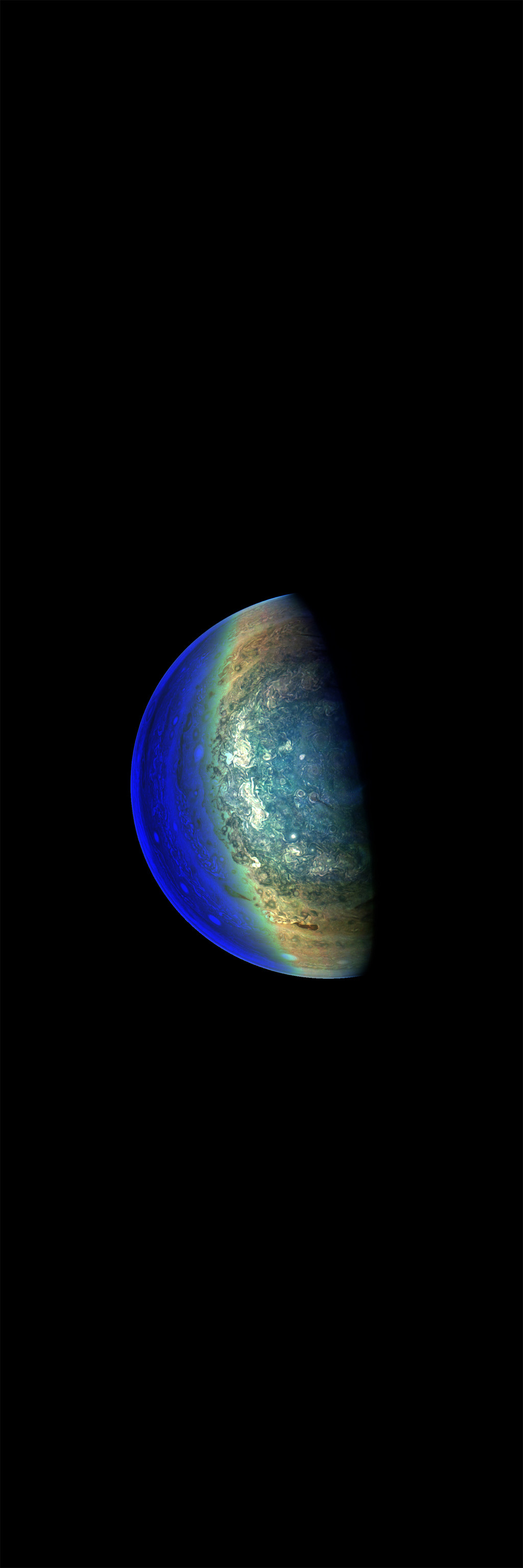 Lo scatto è uno dei tanti che Juno ha ripreso mentre era rivolto verso il polo Sud del pianeta. Protagonista della foto è, appunto, la regione dove il giorno incontra la notte. Per rendere il tutto più dettagliato e visibile, il team di scienziati e ingegneri che guidano la sonda ha regolato la JunoCam in modo che si comportasse come un fotografo ritrattista: la camera a bordo della sonda ha realizzato numerosi scatti a diverse esposizioni sperando di catturare l’immagine con il bilanciamento della luce desiderato. Per consentire a JunoCam di raccogliere una quantità di luce tale da rivelare le caratteristiche della zona crepuscolare di Giove, il lato diurno è stato sovraesposto.