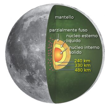 Attualmente si conosce ancora poco della struttura interna della Luna. Tuttavia, recentemente è stato fatto un importante passo avanti in questa direzione da Ananya Mallik, una scienziata dell’Università del Rhode Island che ha condotto esperimenti per determinare la temperatura al confine tra nucleo e mantello del nostro satellite. Dai suoi esperimenti, Mallik è riuscita a dedurre una temperatura tra 1.300 e 1.470 gradi Celsius, un valore che si colloca all’estremo superiore di una precedente stima affetta da un’incertezza di circa 800 gradi.