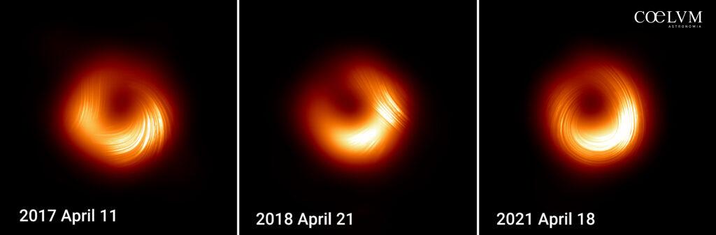 Oggi un nuovo passo è stato compiuto: confrontando i dati raccolti nel 2017, 2018 e 2021, gli scienziati hanno dimostrato che i campi magnetici vicino all’orizzonte degli eventi non sono statici ma cambiano nel tempo. La dimensione dell’anello luminoso rimane stabile — confermando le previsioni della relatività generale di Einstein — ma il pattern di polarizzazione, cioè l’orientamento della luce polarizzata generata dal plasma magnetizzato, varia in modo significativo.