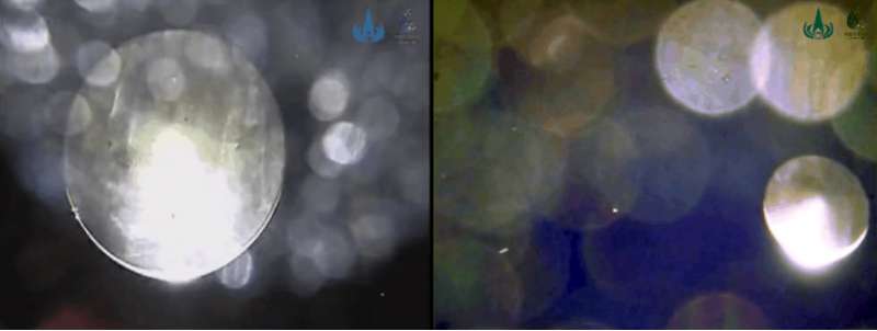 Quella a destra, in bianco e nero, è invece una ripresa della telecamera “HazCam” anteriore; si tratta di una vista grandangolare e mostra, oltre al bordo della piattaforma di atterraggio (lander), anche la rampa già pronta con i due binari sui quali, sabato prossimo, il rover Zhu Rong dovrebbe discendere fino alla superficie, per poi scattare i primi selfie e iniziare le indagini sul terreno. Si notano in alto le due lunghe antenne del radar per l’analisi del sottosuolo e altri meccanismi, anch’essi dispiegati normalmente.