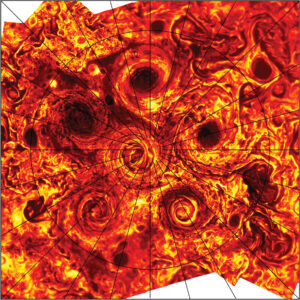 - Leggi l’articolo su Nature Clusters of cyclones encircling Jupiter’s poles di A. Adriani, A. Mura, G. Orton, C. Hansen, F. Altieri, M. L. Moriconi, J. Rogers, G. Eichstädt, T. Momary, A. P. Ingersoll, G. Filacchione, G. Sindoni, F. Tabataba-Vakili, B. M. Dinelli, F. Fabiano, S. J. Bolton, J. E. P. Connerney, S. K. Atreya, J. I. Lunine, F. Tosi, A. Migliorini, D. Grassi, G. Piccioni, R. Noschese, A. Cicchetti, C. Plainaki, A. Olivieri, M. E. O’Neill, D. Turrini, S. Stefani, R. Sordini e M. Amoroso.