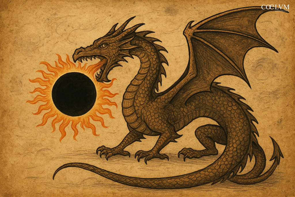 Nell’antichità si pensava che un drago, disteso sull’eclittica, divorasse il Sole durante le eclissi solari, che possono verificarsi solo quando la Luna è in prossimità di uno dei nodi.