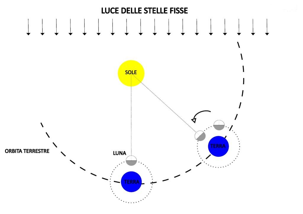 Il tempo che la Luna impiega a percorrere la propria orbita intorno alla Terra tornando alla posizione iniziale rispetto al Sole è il cosiddetto mese sinodico. Ovvero, è il tempo che la Luna impiega per ritornare alla stessa fase iniziale presa come riferimento (da Luna nuova a Luna nuova, ad esempio).