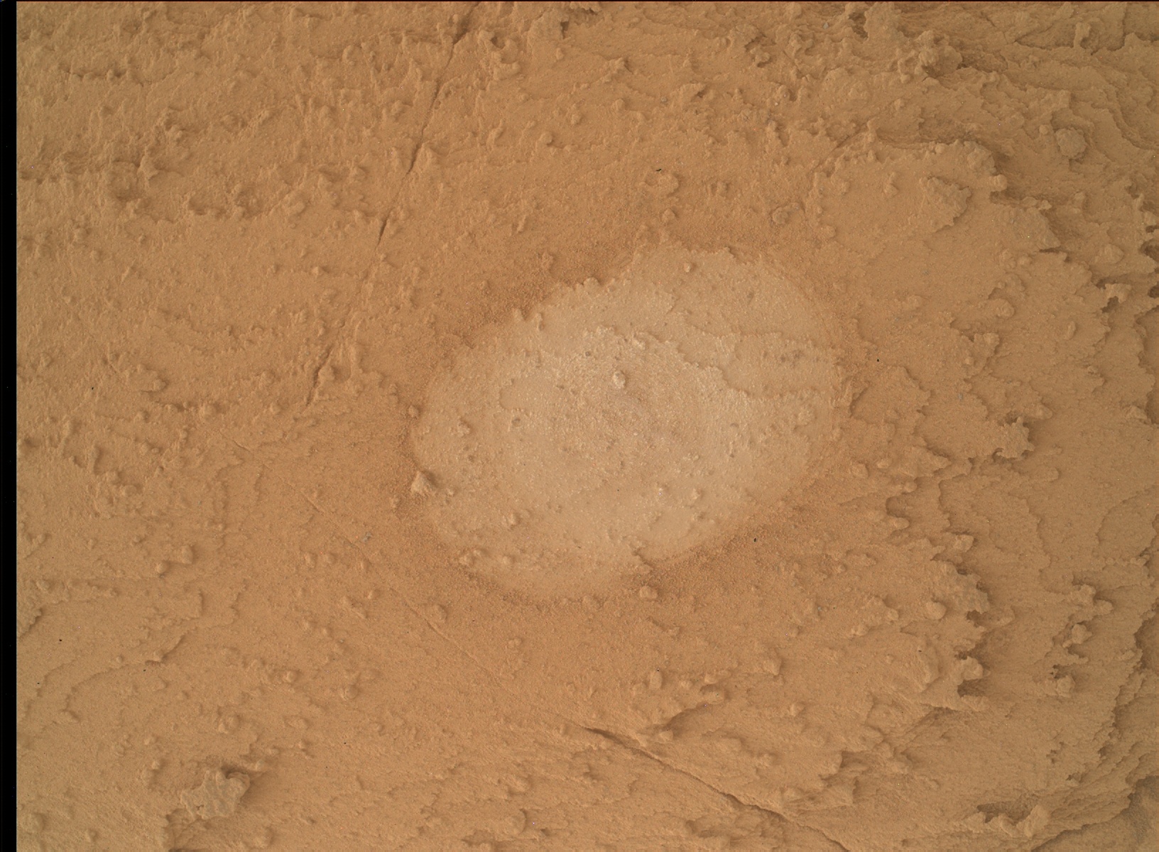 I geologi sono estremamente interessati agli esiti che daranno le analisi spettroscopiche di questa roccia appena esposta, e la ragione sono i grani di notevoli dimensioni (per confronto, il diametro dell’abrasione è di 5 cm).